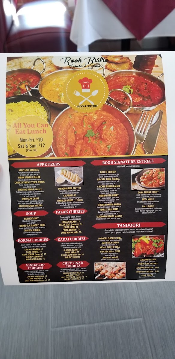 At Rooh Bistro, every dish is a celebration of bold flavors and culinary creativity. The menu invites you to explore a fusion of contemporary and traditional influences, bringing vibrant spices and fresh ingredients to every bite. From savory appetizers to indulgent mains, the Rooh Bistro Menu offers something for every palate, featuring dishes that are as visually stunning as they are delicious. Whether you're craving something familiar with a twist or eager to try something new, each selection is designed to excite and satisfy. The thoughtful balance of flavors reflects a passion for high-quality ingredients, expertly prepared to elevate your dining experience.